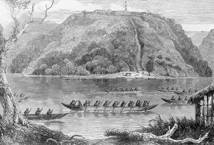 After the confiscation of surrounding Māori land, Tūākau became a farming service centre and thus through the mid-late1800s the river was the main source of trade and freight movement between Auckland and the south and therefore the ‘first’ Tuakau Township was aptly situated a stone’s throw away from the renowned Waikato River, ‘the longest river in New Zealand, running for 425 kilometres (264 mi) through the North Island. It rises in the eastern slopes of Mount Ruapehu, joining the Tongariro River system and emptying into Lake Taupo, New Zealand’s largest lake. It drains Taupo at the lake’s northeastern edge, creates the Huka Falls, and then flows northwest, through the Waikato Plains. It then empties into the Tasman Sea west of Tuakau at historic Port Waikato.’